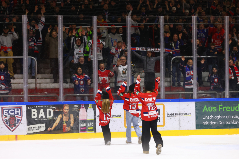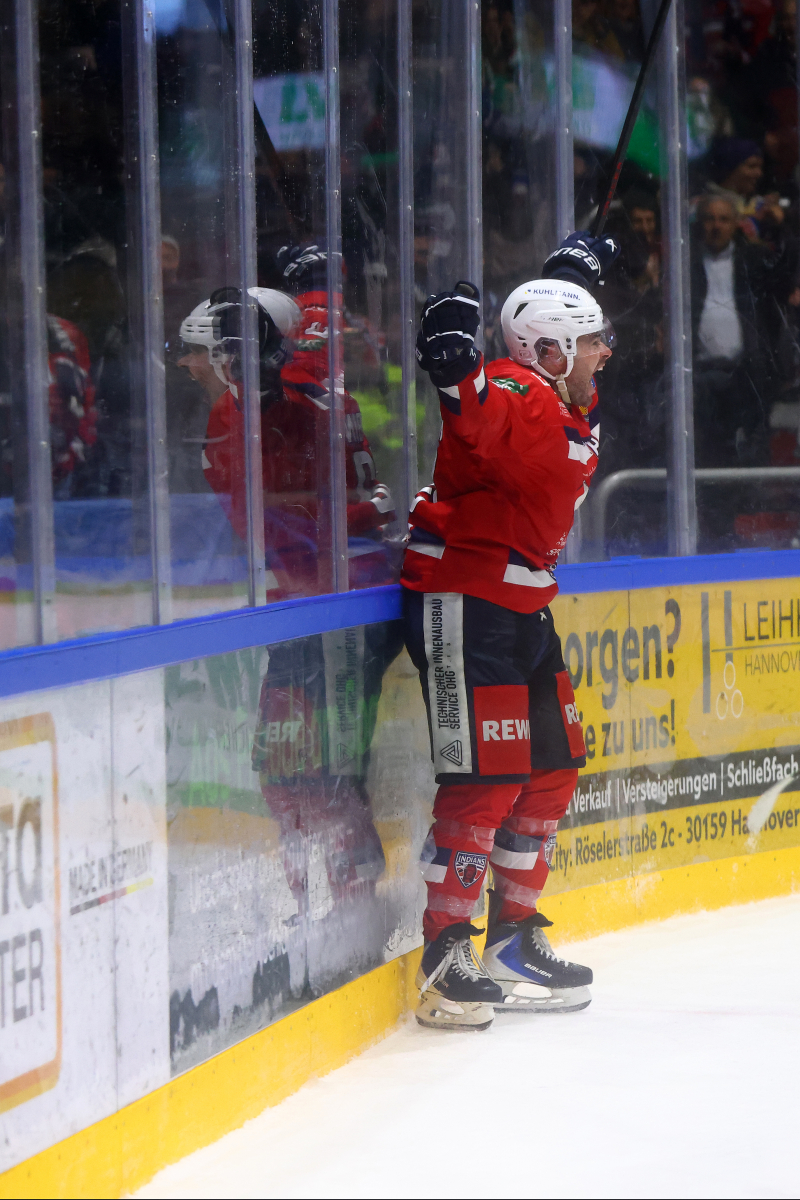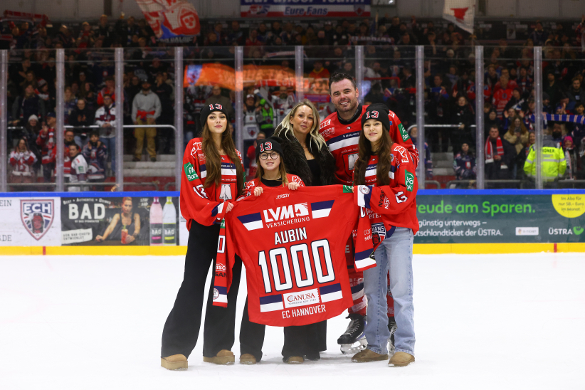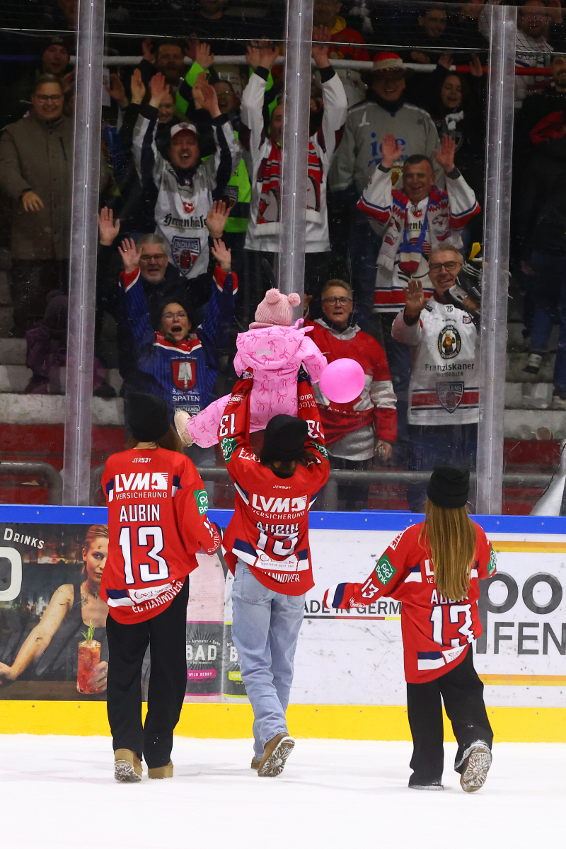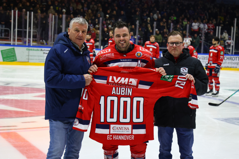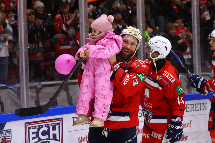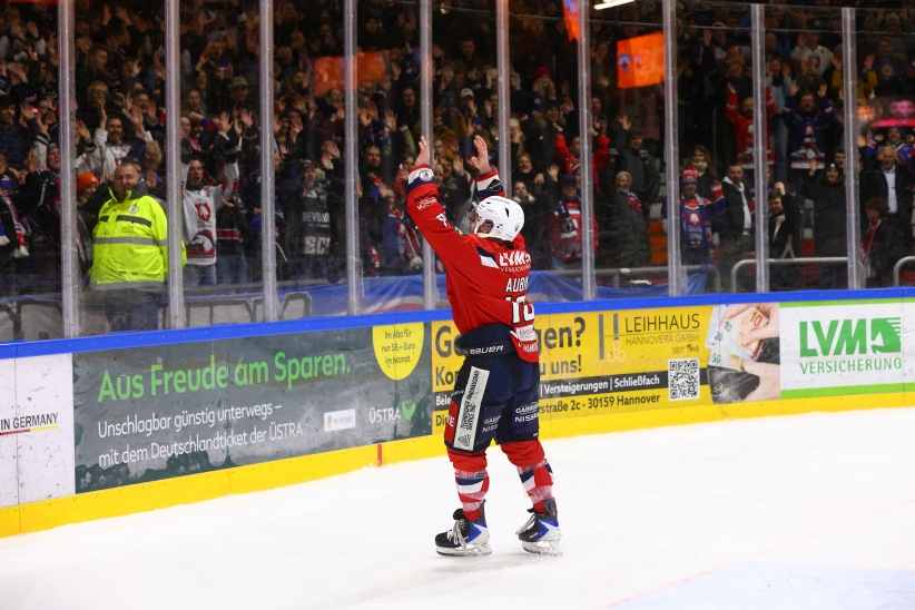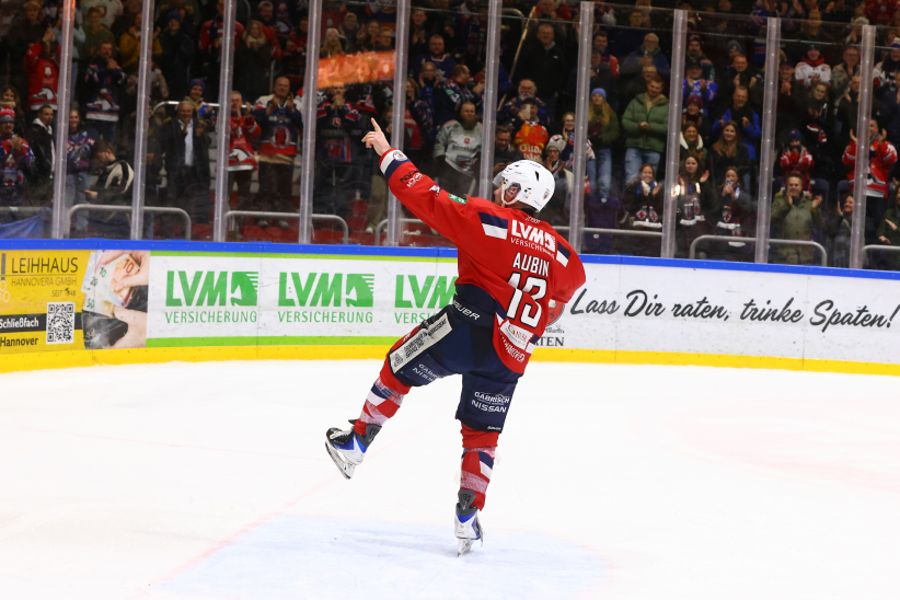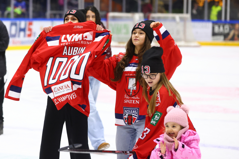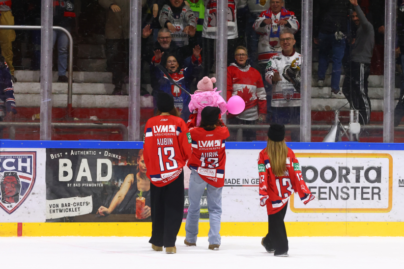 Nach der Partie wurde Brent Aubin von den Fans am Pferdeturm lange gefeiert, legte noch ein elegantes Jubiläums-Tänzchen hin und wurde zudem zum PSD Bank Hannover Man of the Match gewählt. Gemeinsam mit seinen Mannschaftskollegen stand er vor der Fankurve, holte seine Kinder mit aufs Eis und genoss den Moment mit seiner Familie.