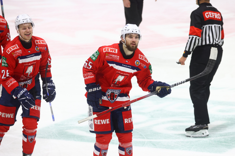 Zuvor hatten Moritz Serikow (8.) und Luca Trinkberger (11.) die Indians im ersten Abschnitt mit ihren Toren mit 2:0 in Führung gebracht, bevor Filip Stopinski in der 14. Minute den Anschlusstreffer für die Mannschaft von der Ostsee erzielte. Kurz vor der Pause nutzten die Indians ein Überzahlspiel und Jacob Lagacé stellte mit seinem Treffer das 3:1 für die Gastgeber her.